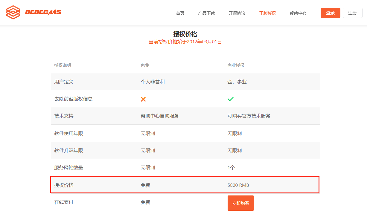 织梦之前官网虽然明码标价,个人非商业用途可以免费使用,其他情况都得购买授权5800/站;但其实并没有强制收费,很多人就直接改改就拿来用了(去掉版权信息,做下前端模板,甚至连模板都懒得做,直接用绿油油的默认模板),这么多年官方也没有追究,不但织梦是这样,帝国、phpcms也是这样,以至于很多人都有个错觉,以为开源=免费。